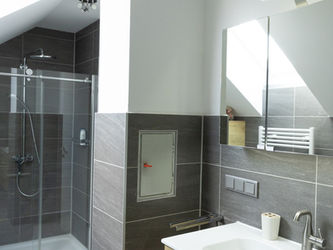 Im Obergeschoss stehen drei gut geschnittene Schlafzimmer zur Verfügung. Eines der Zimmer verfügt über einen eigenen Balkon. Das modernisierte Badezimmer mit WC überzeugt durch zeitloses Design und angenehmen Komfort.